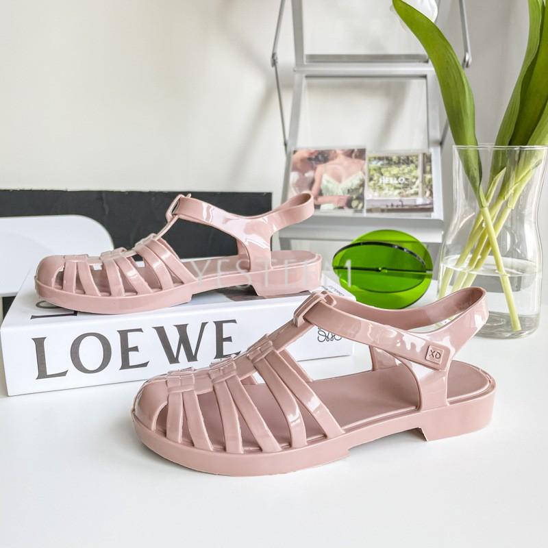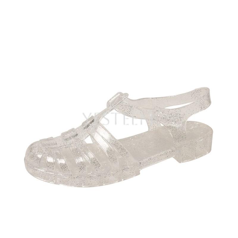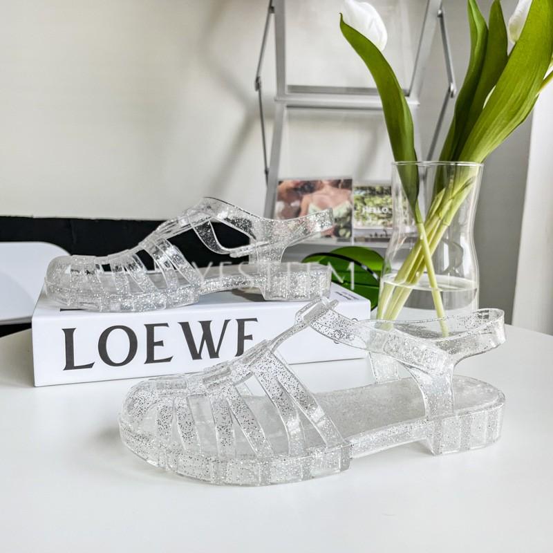 YESTEEM Women's Summer Roman Flat Bottom Sandals Transparent Crystal Beach Shoes Flat Heel Slip-On Closure Rainproof Plastic Jelly Shoes